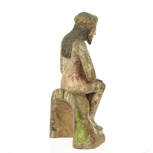 The small figure shows the castigated Christ, resting on the way to the cross onto which he was to be nailed. It comes from the environment of the north German Master Bertram of Minden.
