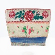 It is manufactured by stitching fabric adorned with colourful strips, silk ribbons and metal platelets on top of a trapezoid piece of cardboard. Beadwork becomes popular during the Biedermeier period. The leaves and vines are rendered as authentically as possible using templates in a contemporary style. Rose motifs are especially widespread. A broad decorative ribbon made of silk is placed beneath the beadwork.