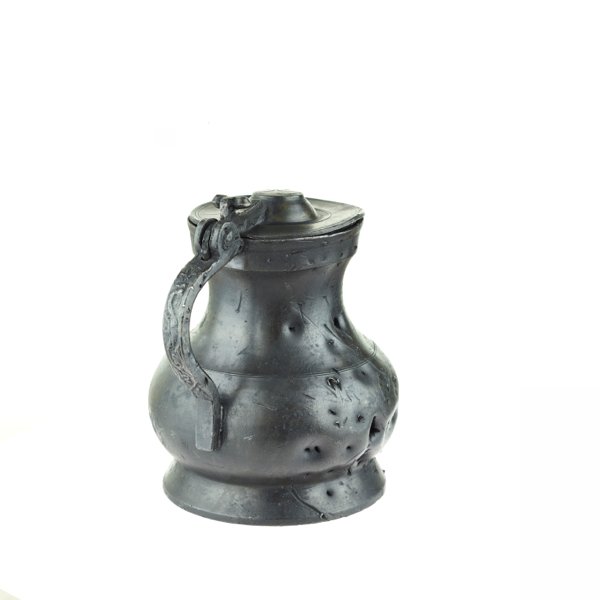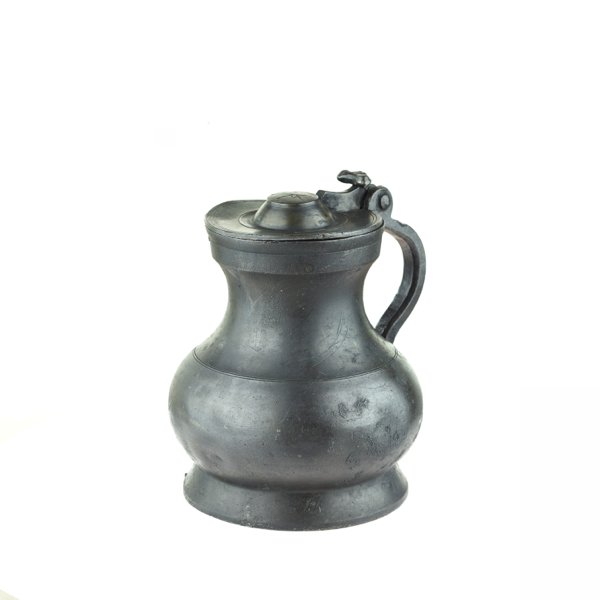 Die seltene mittelalterliche Zinnkanne stammt aus einem 1903/04 in der Warnowmündung bei Baggerarbeiten gefundenen Schiffswrack, das wahrscheinlich beim Auslaufen aus dem Rostocker Hafen gesunken ist. Die Kogge hatte neben anderer Ladung auch Zinn- und Messinggeräte an Bord. Die größeren, bauchigen Kannen werden seit etwa 70 Jahren als „Hansekannen“ definiert. Das bezieht sich auf die räumliche Verbreitung dieses Kannentyps.