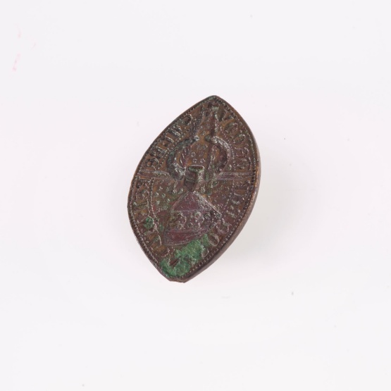 Das spitzovale Messingpetschaft wurde bei der Umgestaltung des Kirchhofes von St. Marien in Pasewalk in einem mit Brandschutt verfüllten Keller der Kirchbudenreihen ausgegraben. Mittelalterliche Siegelstempel sind sehr seltene Funde. Dieser lässt sich durch Größe und Form des abgebildeten Wappenschildes und Form des Topfhelmes stilistisch um 1300 einordnen. Petschafte der Ritterschaft waren meist rund oder schildförmig. In diesem Falle ist es spitzoval, was darauf schließen lässt, dass der Besitzer des Siegels in Verwandtschaft zu einem Geistlichen Würdenträger stand.