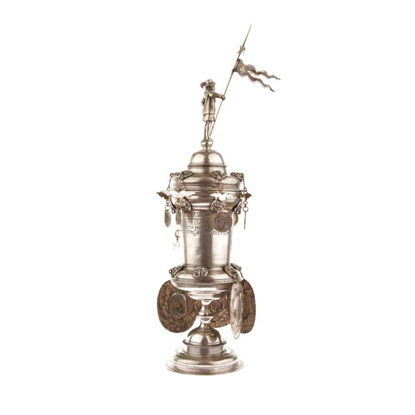 Diese Pokale zählen zum wertvollsten Besitz der Zünfte und werden nur bei Festlichkeiten ihres Amtes benutzt. Die angehängten Silberschilder und Münzen sind Geschenke oder Stiftungen einzelner Meister.
