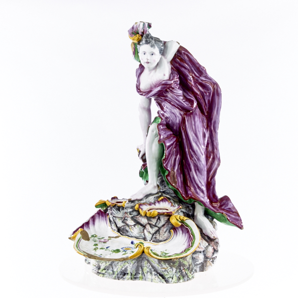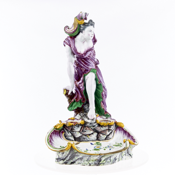 De anner, verluuren gahn Arm hett woll dat Gehüüs vun’ne Daschenklock hollen. Johann Otto Frantzen hett dat Stück 1768 anmalt. Glasiert hett dat Johann Ullström. Dat Modell för de Plastik hett de Bildhauger Friedrich Rose makt.