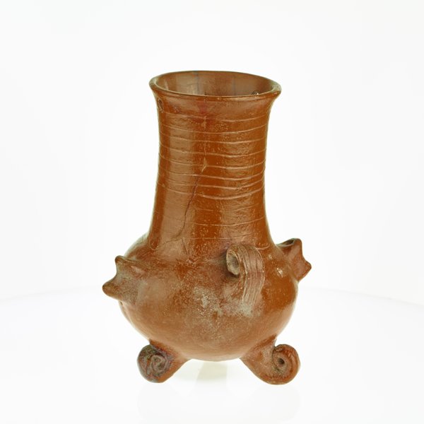 Naczynie z dwoma uchwytami oraz kulistym brzuchem, na trzech zawijających się nogach. Służyło do napełniania płynami. Heinrich Schliemann odnalazł je między warstwami Troja II i V.